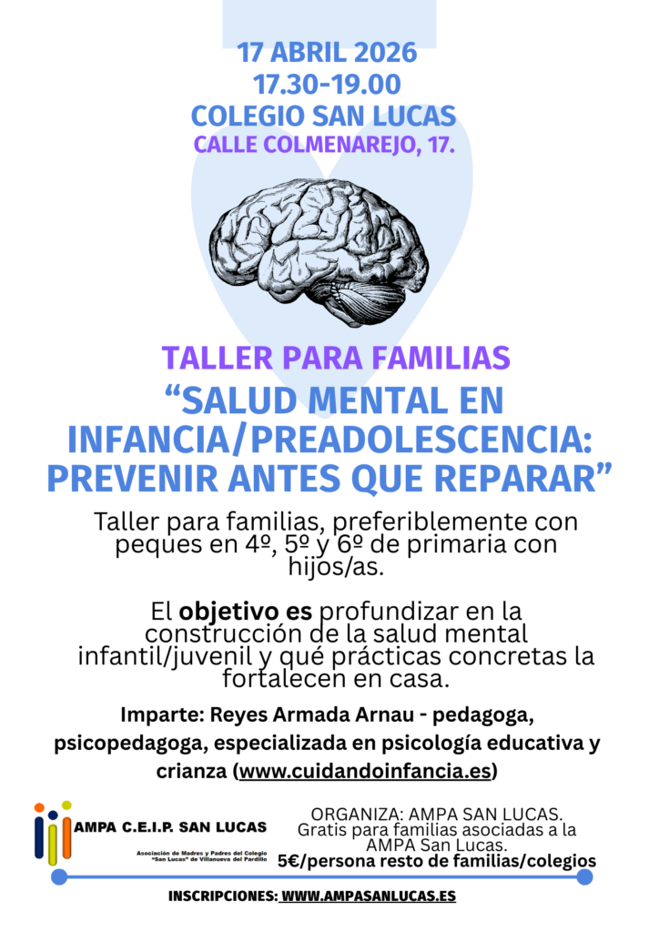 La AMPA del San Lucas y la AMPA del Rayuela llevábamos tiempo organizando este encuentro con Lupe García, directora de Sexducacion, con ya 11 años de recorrido. Ella es sexóloga y educadora, y lleva muchos años impartiendo formación a familias, peques, adolescentes y también asesoramientos privados. Para nuestras AMPAS ha sido un encuentro maravilloso y estamos tremendamente agradecidas.